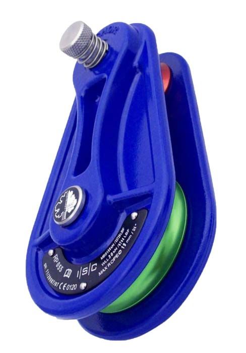 To get the most out of your favourite ropes, or to create a crotch where none is available, simply tie the sling around the tree, below the area to be cut, with the pulley on the falling side. By threading your lowering line through the pulley at the new pivot point, instead of the rough crotch of a tree, heat and friction are reduced to nearly zero. Bull ropes will last longer, and, combined with a 'Port-A-Wrap', will provide you with greater control of heavy wood, eliminating the destruction of expensive or sensitive landscapes. This system provides an instant, frictionless pulley for your ropes to run or a leverage vantage point above heavy limbs targeted for removal.- side cheeks are aluminium with an epoxy polyester coating- stainless steel sheave and bushing pins- spring loaded upper pin with a captive bushing. Simply push and twist the upper pin and the cheek plates will open . And best of all, the bushing and pin cannot fall out of the block.