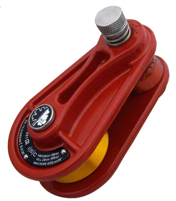 The ISC RP051 block has been designed to take a 16mm (5/8”) rope with up to a 25mm (1”) topping strop and has a work load Limit (WLL) of up to 2000kg.