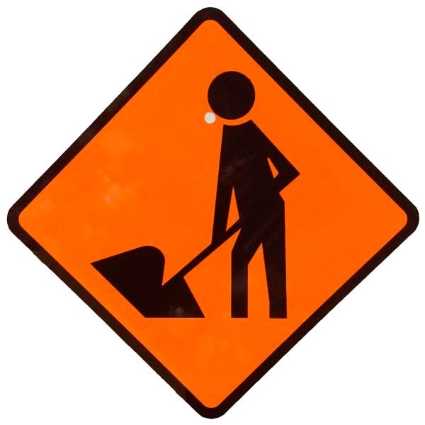This is a temporary warning sign that should be displayed when men or machines are working on the roadway.