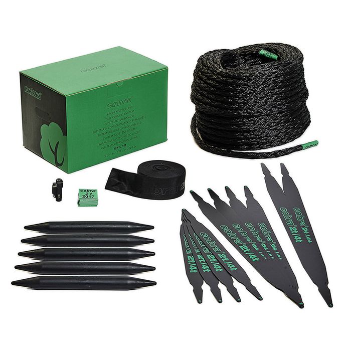 The 5 system-package cobra 2t contains sufficient material for 5 dynamic tree cabling. For the installation, only scissors are required (separately available). According to 'ZTV Baumpflege'*, cobra 2t is suitable as dynamic tree cabling for branches/stems having a diameter of up to 40 cm. The required minimum system tensile strength of 2t is guaranteed for a full period of 12 years.