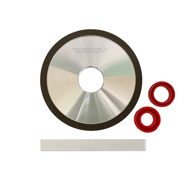 4" Diamond Grinding Wheel comes with a dressing stick and two bore inserts. It has a 25.7mm (1") bore, a 16mm (5/8") bore insert and a 12.5mm (1/2") bore insert.