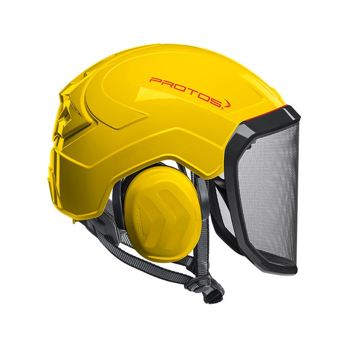 The perfect fit and optimum hold of the PROTOS® Integral Arborist make it perfect for work at height, where face protection is indispensable. The hearing and face protection are integrated into the shell of the head protection and thereby prevent snagging on branches and protruding parts.