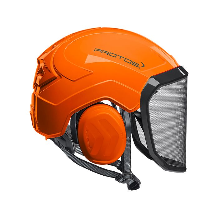 The perfect fit and optimum hold of the PROTOS® Integral Arborist make it perfect for work at height, where face protection is indispensable. The hearing and face protection are integrated into the shell of the head protection and thereby prevent snagging on branches and protruding parts.