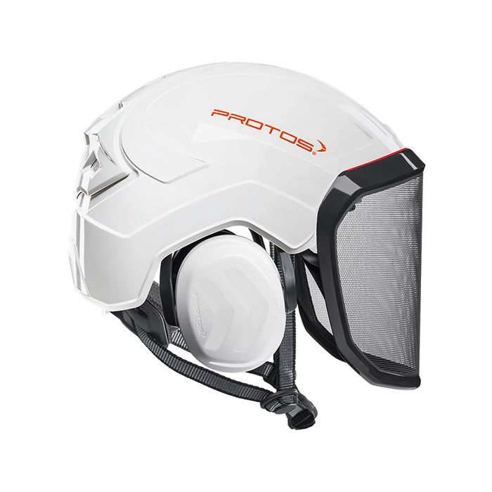 The perfect fit and optimum hold of the PROTOS® Integral Arborist make it perfect for work at height, where face protection is indispensable. The hearing and face protection are integrated into the shell of the head protection and thereby prevent snagging on branches and protruding parts.
