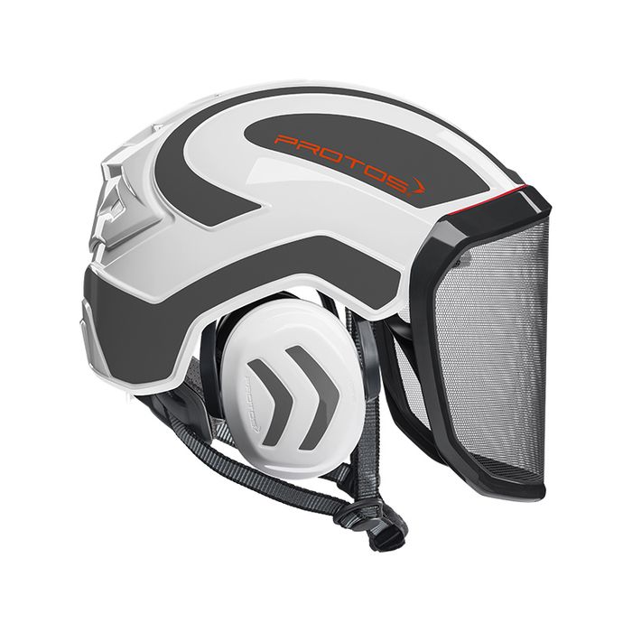 The perfect fit and optimum hold of the PROTOS® Integral Arborist make it perfect for work at height, where face protection is indispensable. The hearing and face protection are integrated into the shell of the head protection and thereby prevent snagging on branches and protruding parts.