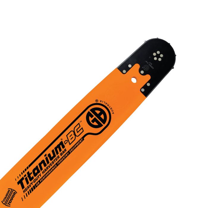 SUITS WOODSMAN PRO and WARATAH - 3/4" Titanium Replacement Nose Harvester Bar. Manufactured to exacting tolerances to maintain precision clearances for sprocket rotation providing less sprocket heating. Ultra high strength material, ensures trouble free performance in all cutting conditions.