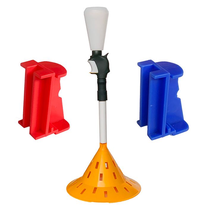 | Contents: (Bottle, dispenser, 2 x trigger inserts (DTIR 1.75 (Red) & DTIB 2.50 (Blue)), locking pad, flexible connector, spreader cone pylon, spreader cone, training rod). |