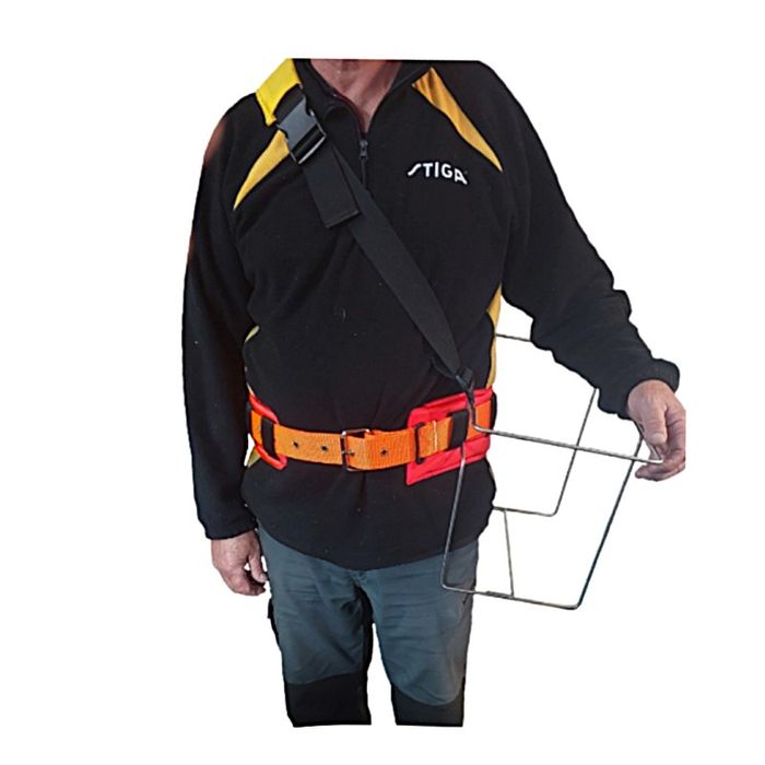 The shoulder strap reduces the strain on the body by distributing the weight from only the hips to over the shoulder and hips therefore reducing fatigue on the body which helps performance and stamina meaning more seedlings can be planted.