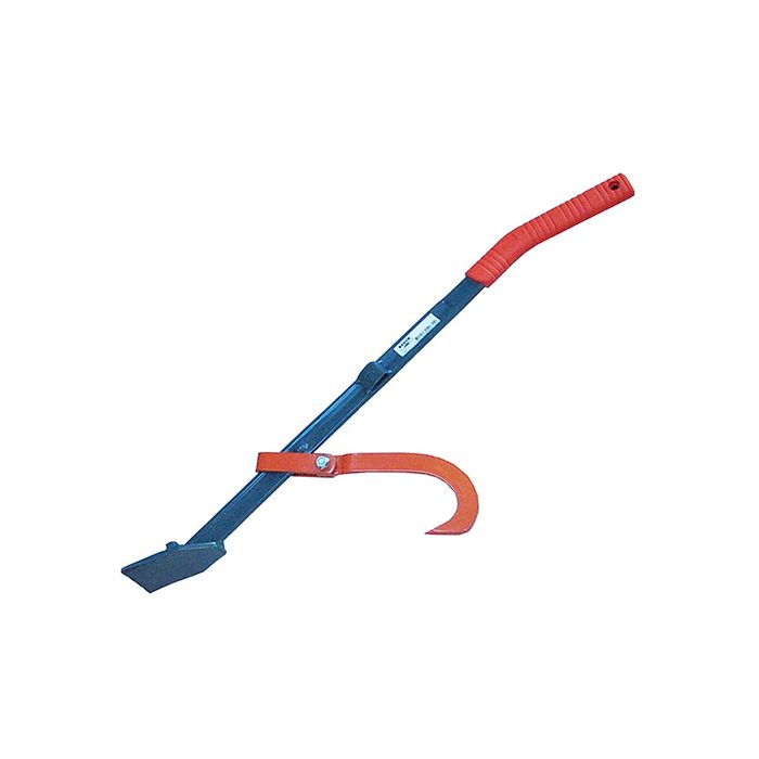 Heavy duty forged steel bar with sliding cant hook and thermoplastic rubber handle.