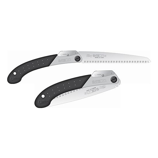 The Silky Super Accel Large Teeth saw is a lightweight, razor-tooth folding saw specially designed for aggressive cutting needs. Blade easily locks into two different angle positions for easy cutting. Use the first position for most cutting jobs. The rubber, pistol grip handle is easy to grasp especially on the pull-stroke when greater cutting force is needed. On occasion, the second flush cutting position proves invaluable in confined or unusual situations. The razor sharp teeth have four cutting angles along the length of the blade for fast, clean cuts. The aluminum handle features a comfortable textured-rubber grip. Rated as one of the finest crafted folding hand saws available, the Super Accel has consistently been a popular choice of arborists and gardeners worldwide.