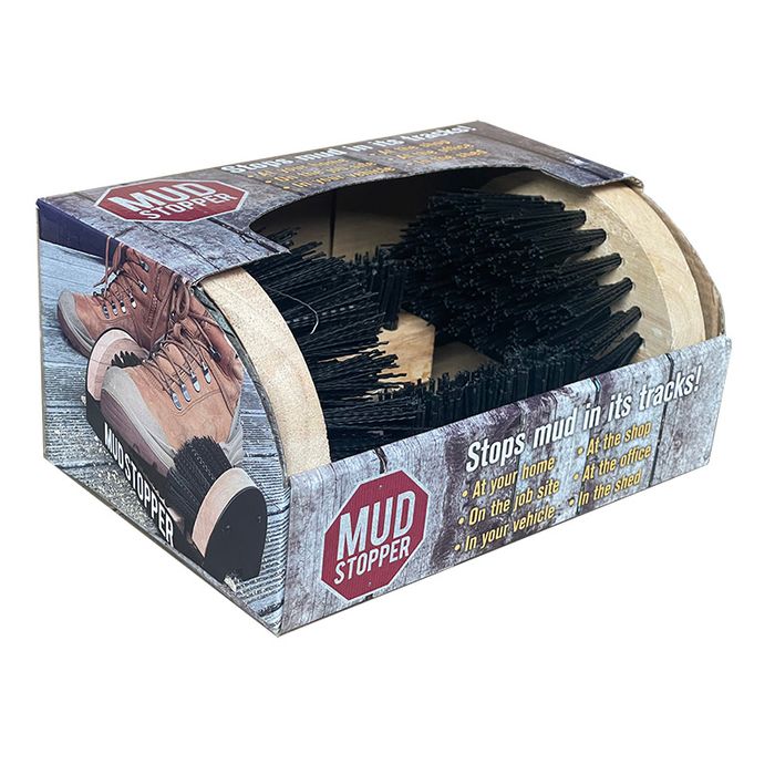 MUD STOPPER is a practical tool designed for clearing mud and dirt from outdoor footwear. Mount your MUD STOPPER in an area close to entry doors OR to a solid board for both stability and mobility OR leave it loose to be used anywhere.