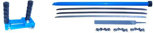 This tool is for closing up the worn groove in your chainsaw bar. The use of this tool will increase the life of your chainsaw bar and give you better performance when cutting. A correctly gauged groove will keep your chain standing up straighter and cutting straighter. Includes Holder for groove inserts, .063 Groove Insert, .058 Groove Insert, .050 Groove Insert, 8" Flat File.
