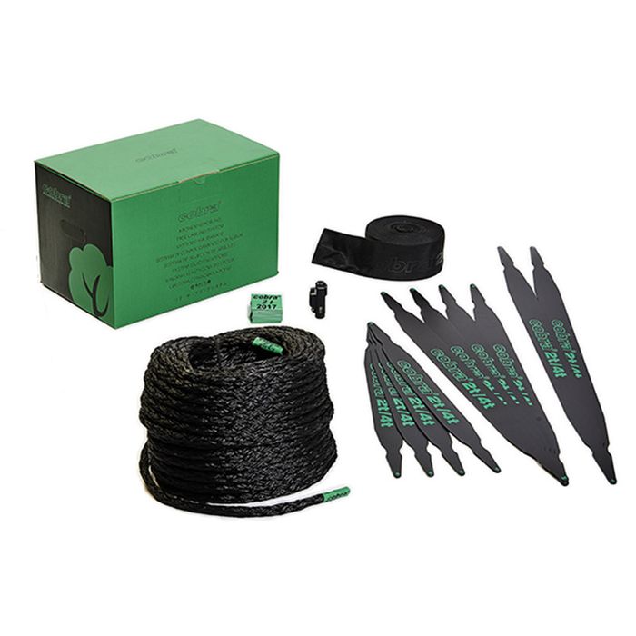 The 5 system-package LeanKit cobra 2t contains sufficient material for 5 static tree cabling or 5 load/support-cabling. For the installation, only scissors are required (separately available). According to 'ZTV Baumpflege'*, cobra 2t is suitable as static cabling for branches/stems having a diameter of up to 30 cm. The required minimum system tensile strength of 2 t is guaranteed for a full period of 12 years.