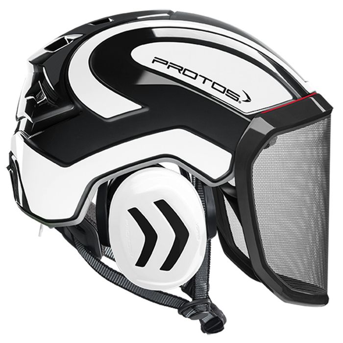 The perfect fit and optimum hold of the PROTOS® Integral Arborist make it perfect for work at height, where face protection is indispensable. The hearing and face protection are integrated into the shell of the head protection and thereby prevent snagging on branches and protruding parts.