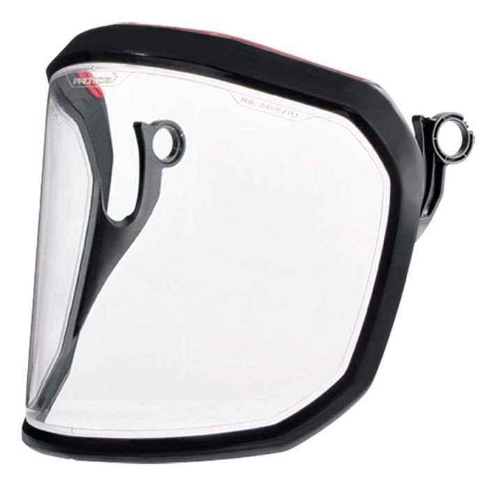 The PROTOS® Integral Clear Visor is an extremely lightweight polycarbonate visor. The patented rubber edge on top of the visor prevents liquids, dust and rain from penetrating from above, and lets them drain away on the left or right side of the visor. Furthermore, the PROTOS® Integral Clear Visor is fully operational even in extreme temperatures from -5° to +55° C, allowing an all-year use. The polycarbonate visor is tested and approved according to EN 166:2002 protection class 1FT and offers a UV protection filter.