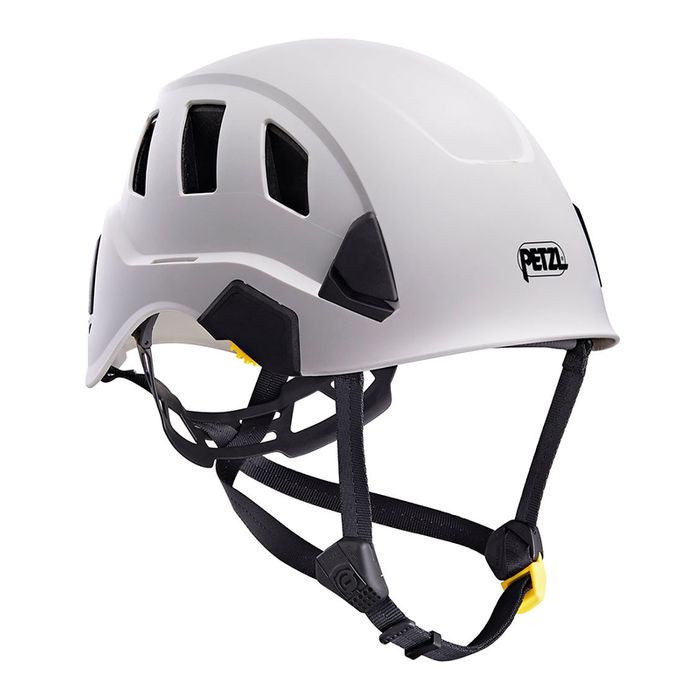 The STRATO VENT helmet is very lightweight and comfortable, thanks to its CENTERFIT and FLIP&FIT systems, which guarantee that the helmet fits securely on the head. The adjustable-strength chinstrap makes it ideal for both work at height and on the ground. It has ventilation holes that allow airflow through the helmet. With its potential for integration of a Petzl headlamp, hearing protection, and multiple accessories, it is an entirely modular helmet, thus responding to the specific additional needs of professionals.
