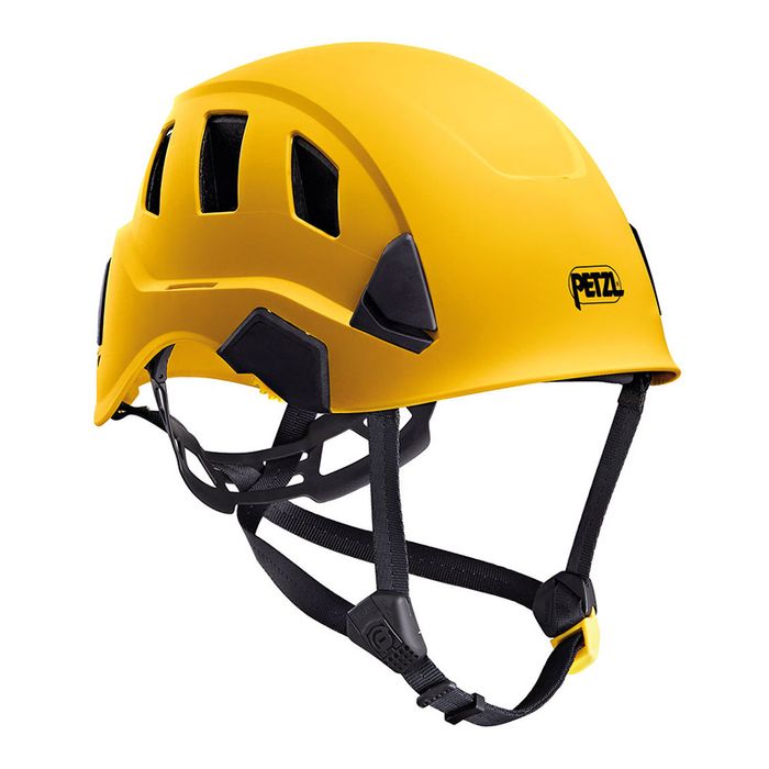 The STRATO VENT helmet is very lightweight and comfortable, thanks to its CENTERFIT and FLIP&FIT systems, which guarantee that the helmet fits securely on the head. The adjustable-strength chinstrap makes it ideal for both work at height and on the ground. It has ventilation holes that allow airflow through the helmet. With its potential for integration of a Petzl headlamp, hearing protection, and multiple accessories, it is an entirely modular helmet, thus responding to the specific additional needs of professionals.