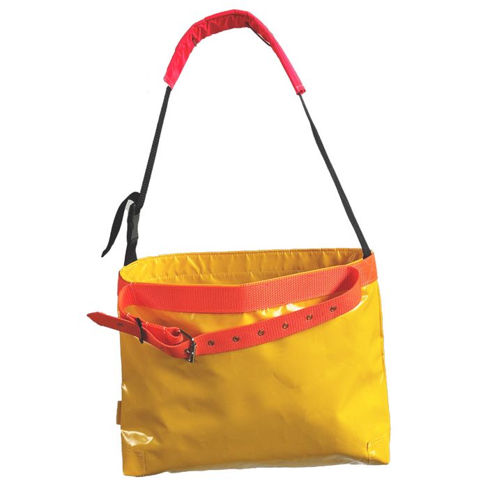 Heavy duty PVC. Sturdy waist belt with metal buckle. Quick release padded shoulder strap.