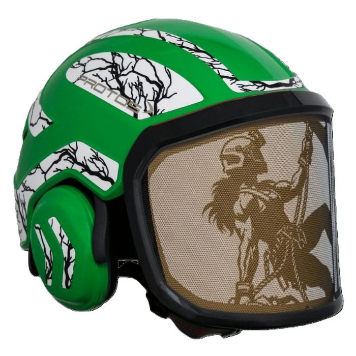 Protos UNIQUE helmets are a great way to get a complete UNIQUE helmet system! These come with UNIQUE specific sticker kits fitted to match up with the printed metal visor (stickers are only available when purchased as a complete UNIQUE helmet system).The perfect fit and optimum hold of the PROTOS® Integral Arborist make it perfect for work at height, where face protection is indispensable.