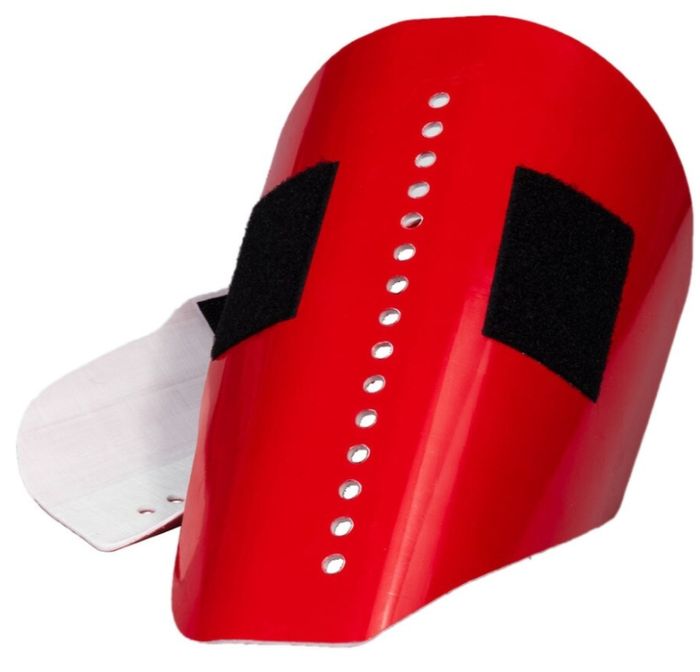 Pair of replacement fiberglass Distel red shells with Velcro. These replacement cuffs can only be used with Distel Pads Plus replacement padding.
