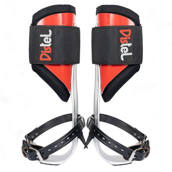 Distel aluminium climbers with DMM shanks and wide, comfortable Velcro straps, 2020 pads which are removable, washable and adjustable, and a choice of American style tree or pole gaffs. Adjustable from 31 to 50cm.